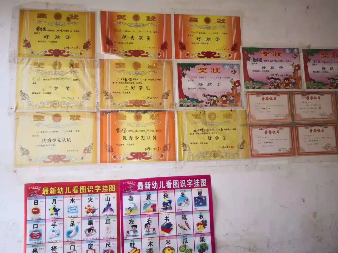 圖2為曾大哥家中三個(gè)小孩所獲得的貼滿墻的獎(jiǎng)狀