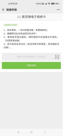 2.然后進(jìn)入電子填寫界面,可以手動輸入機(jī)身編碼或者掃一掃機(jī)身上的二維碼,點(diǎn)擊開始注冊;(圖二)