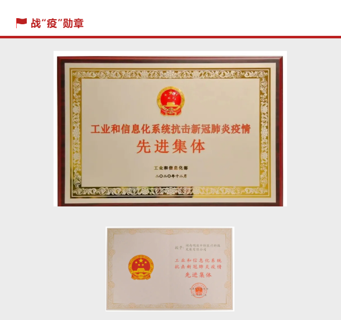 經(jīng)中央批準(zhǔn),近日工業(yè)和信息化部表彰了一批在抗擊新冠肺炎疫情中涌現(xiàn)出的先進集體和先進個人,明康中錦榮獲“工業(yè)和信息化系統(tǒng)抗擊新冠肺炎先進集體”的榮譽稱號(湖南省僅三家)。