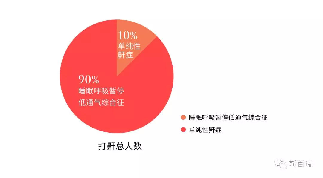 按照國(guó)際分類,睡眠障礙有88種疾病,其中65%是睡眠呼吸暫停低通氣綜合征。這個(gè)疾病很重要的一個(gè)表現(xiàn)就是打鼾,90%的打鼾都屬于睡眠呼吸暫停低通氣綜合征,只有10%是沒(méi)有發(fā)生睡眠呼吸暫停的,這類10%的叫單純性鼾癥。但是,這10%的人經(jīng)過(guò)時(shí)間的推移,還會(huì)轉(zhuǎn)換成睡眠呼吸暫停低通氣綜合征。所以,我們往往把打鼾作為睡眠呼吸暫停低通氣綜合征的代名詞。