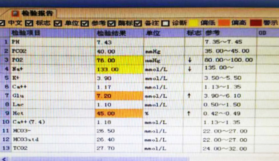 經(jīng)治療1小時(shí)后,復(fù)查血?dú)夥治觯篜H:7.43,PO2:76mmHg,PCO2:40mmHg。
